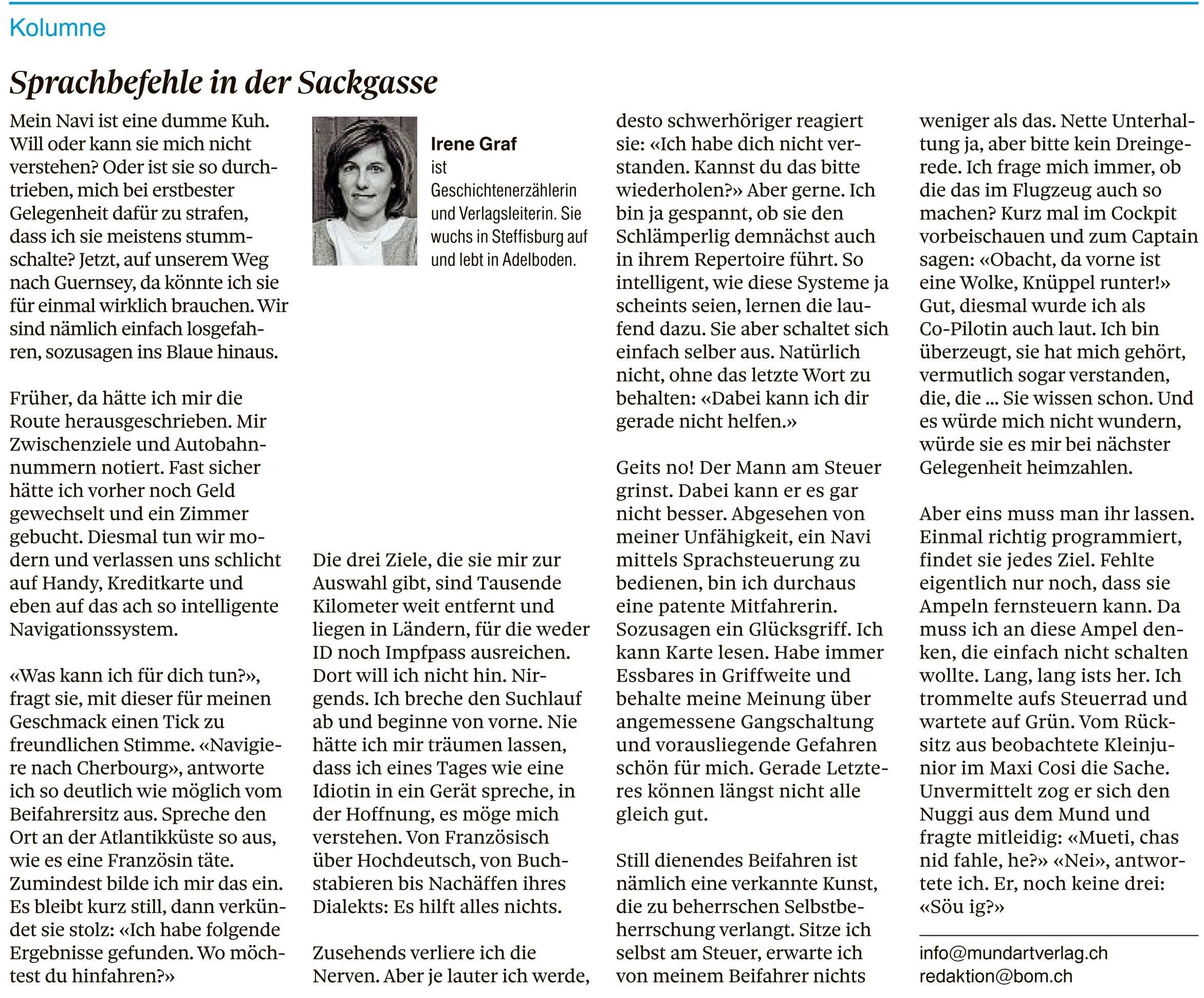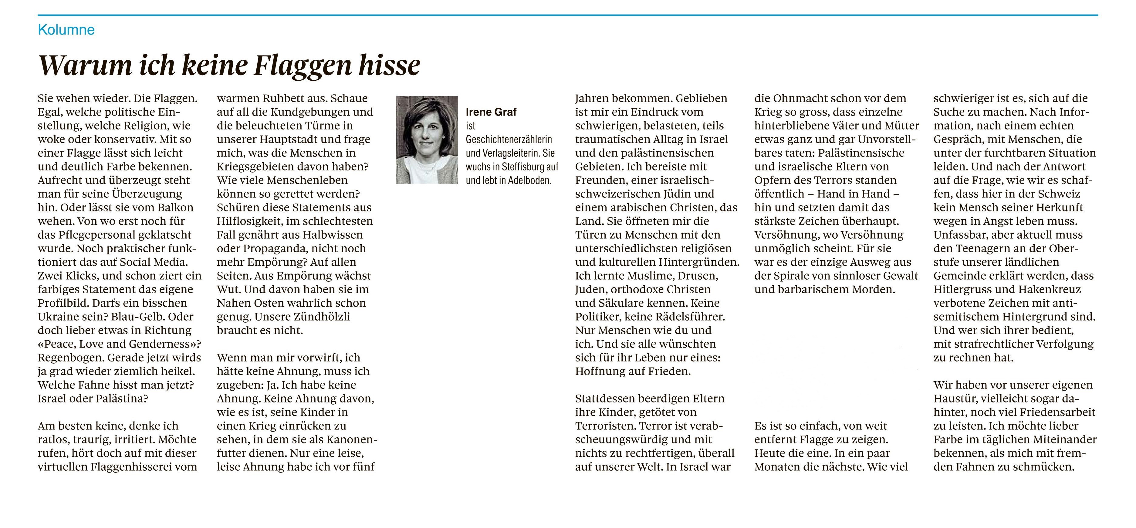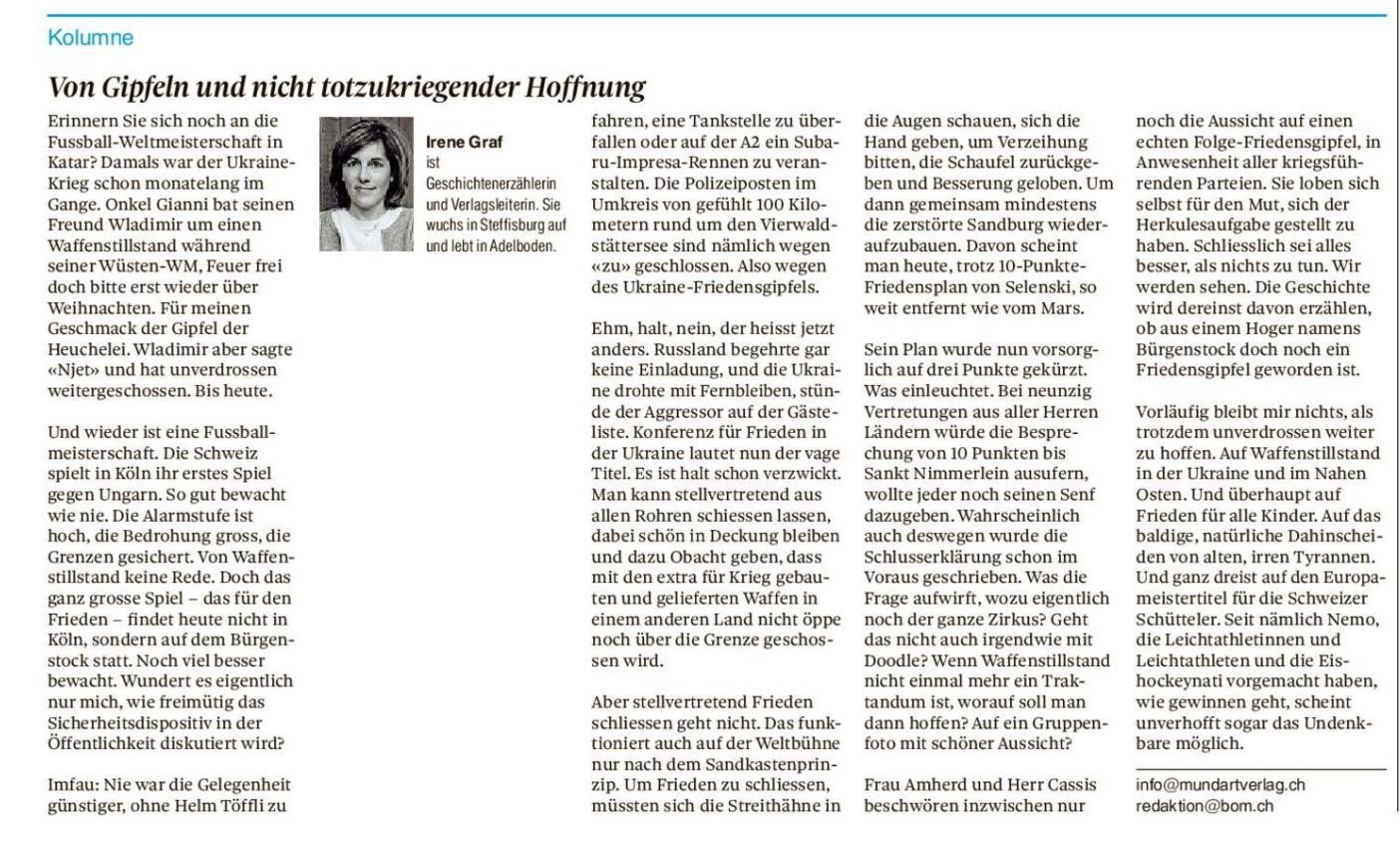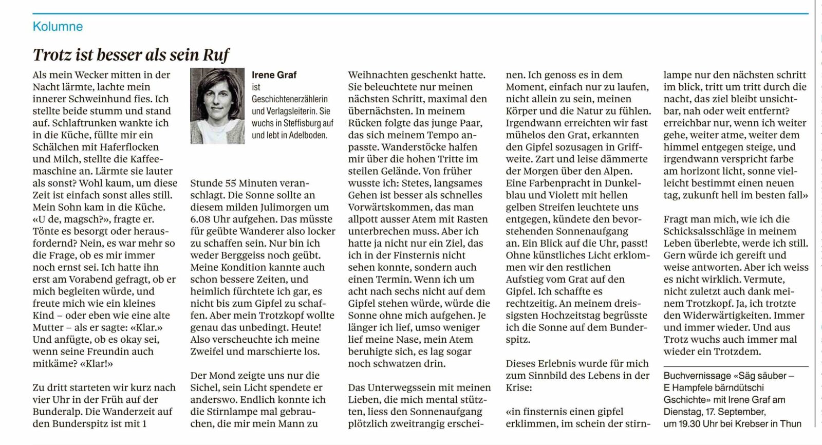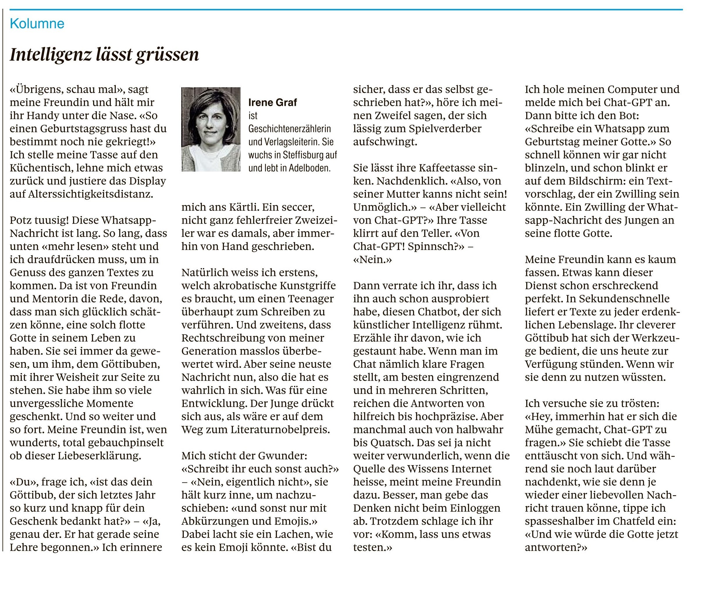 Kolumnen im Thuner Tagblatt/Berner Oberländer von Irene Graf