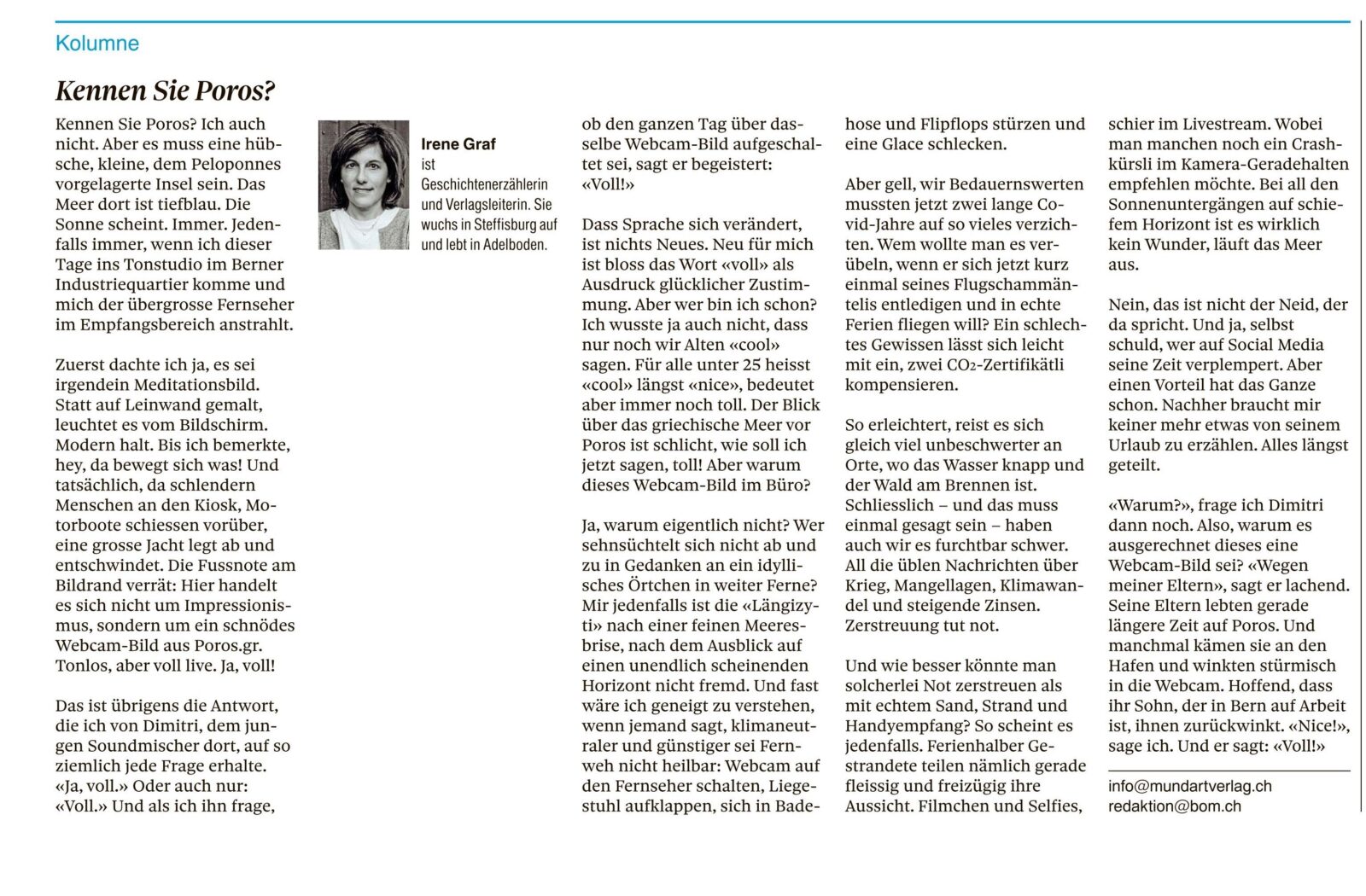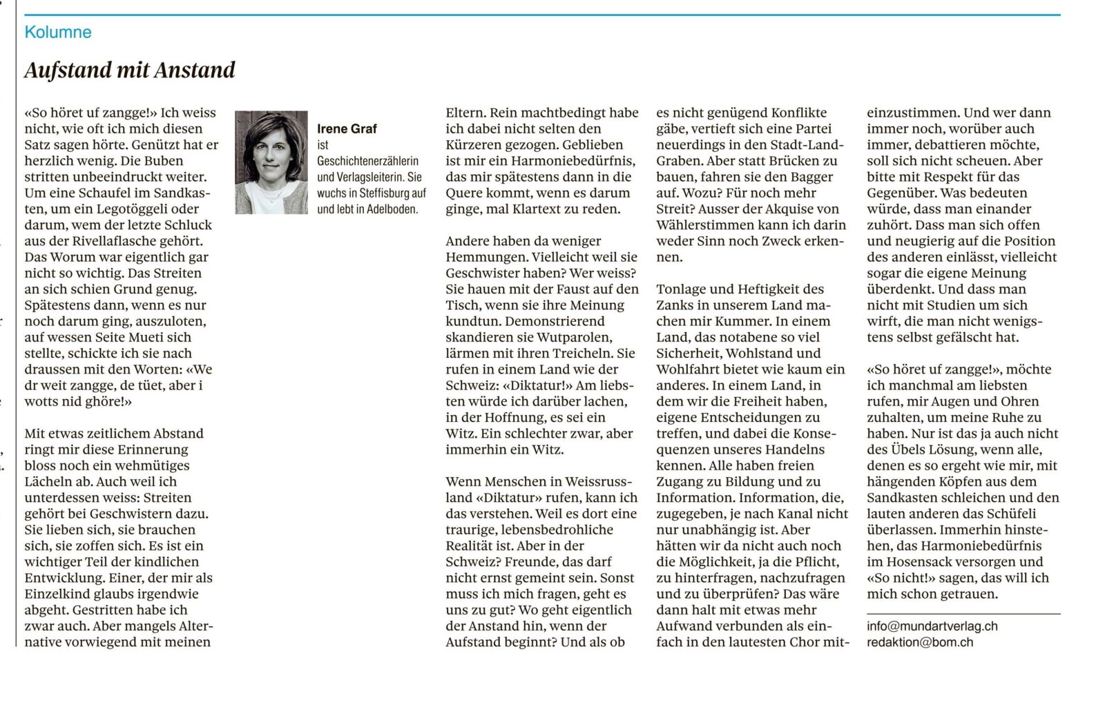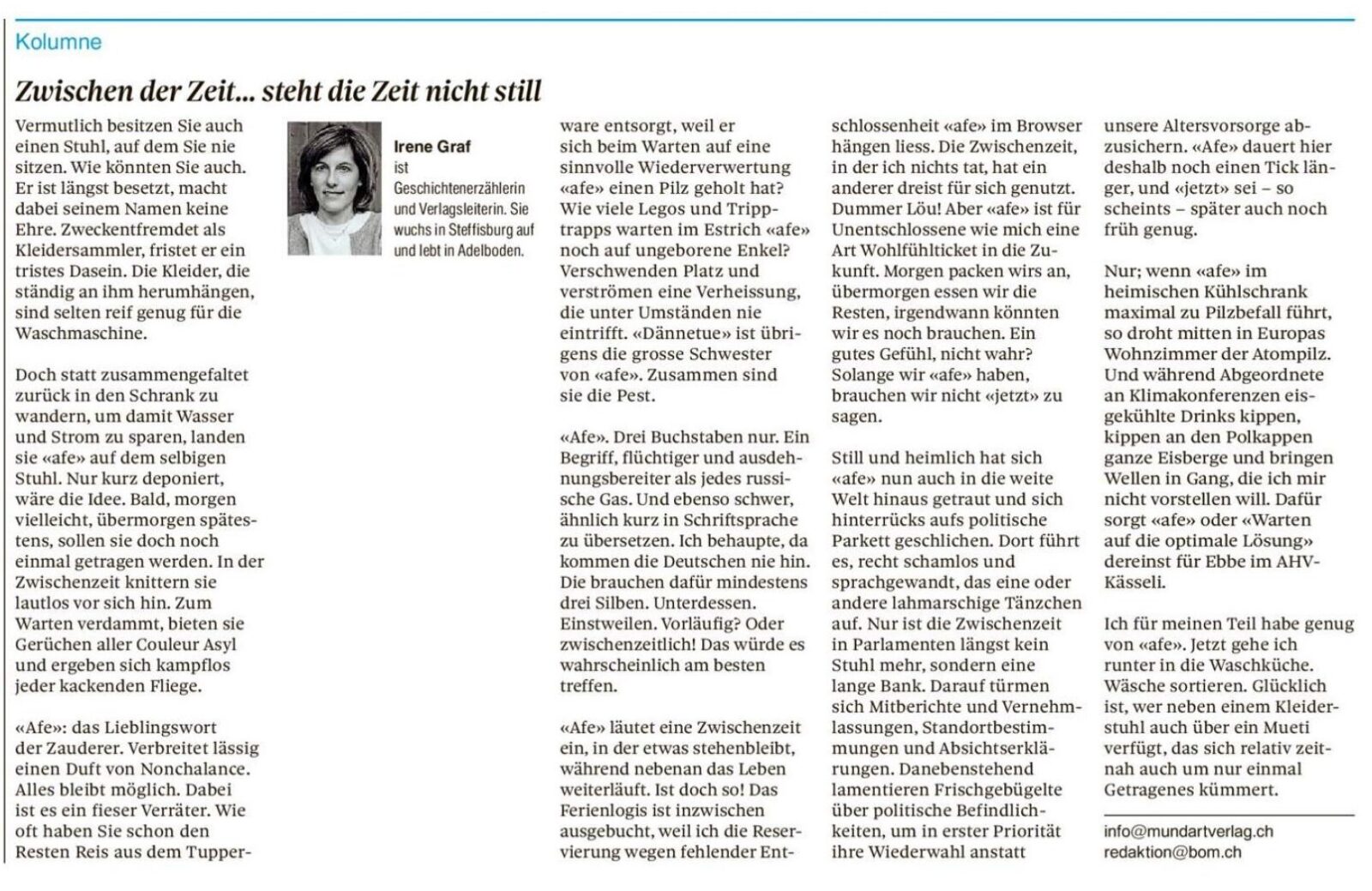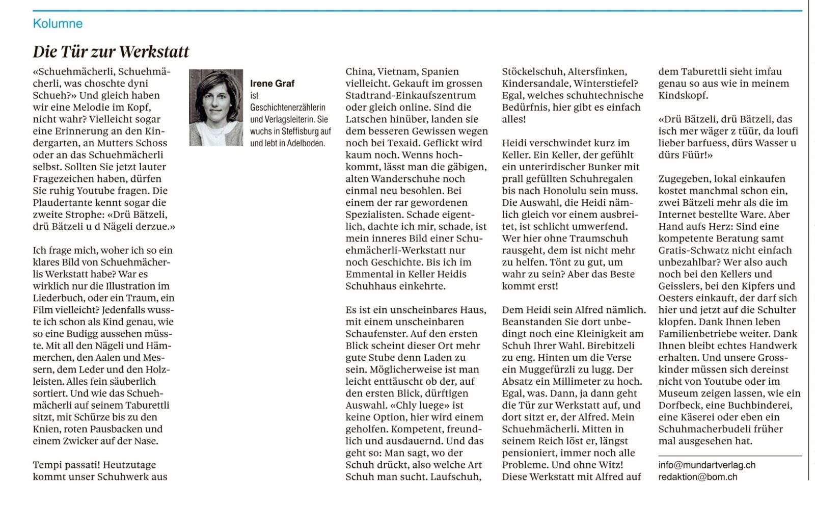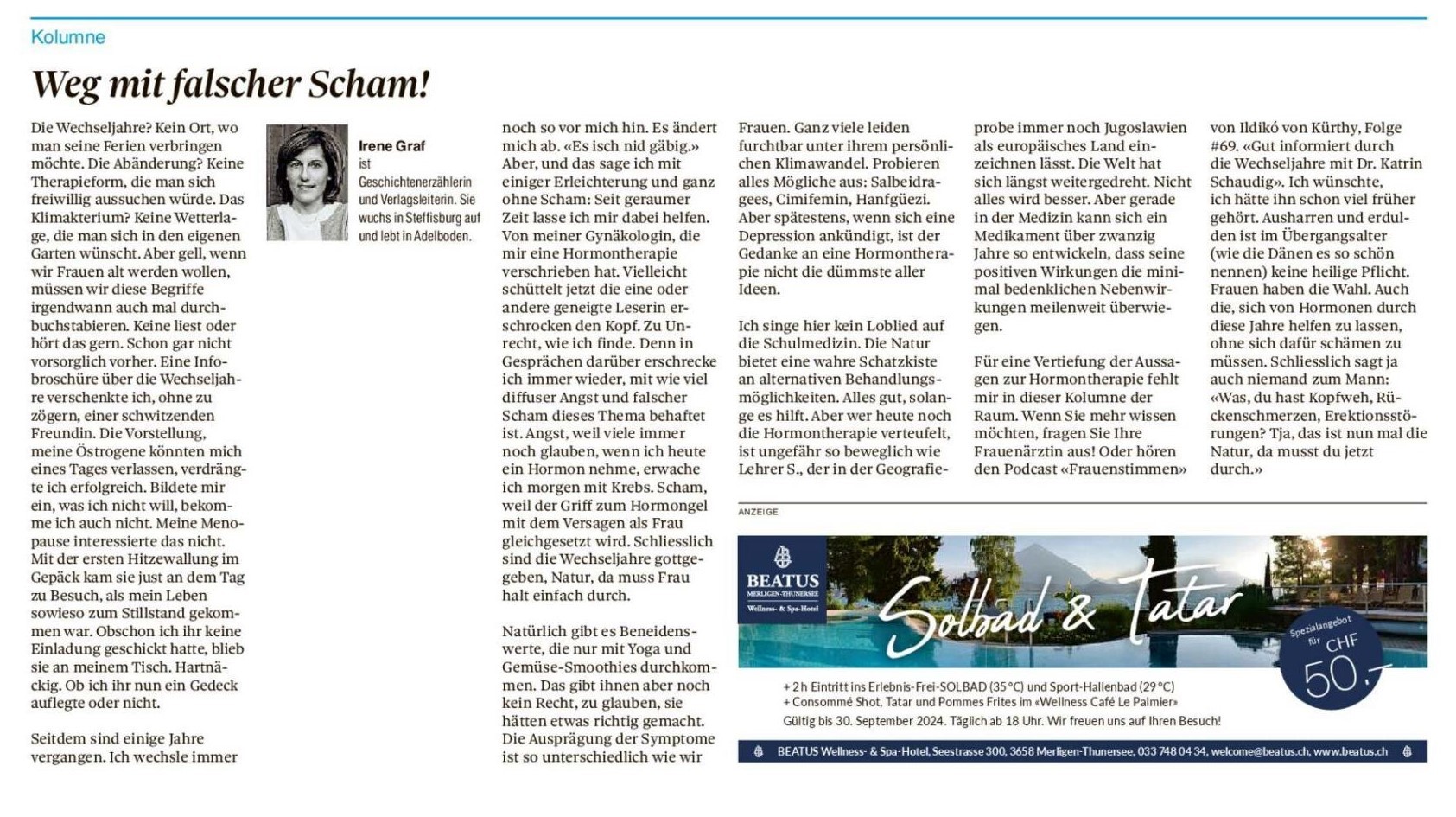 Kolumnen im Thuner Tagblatt/Berner Oberländer von Irene Graf