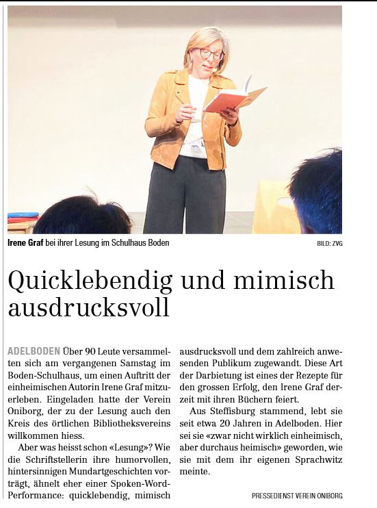 Ah… und dazu gibt es Ausschnitte aus Irenes Auftritt am Mundartfestival in Arosa.